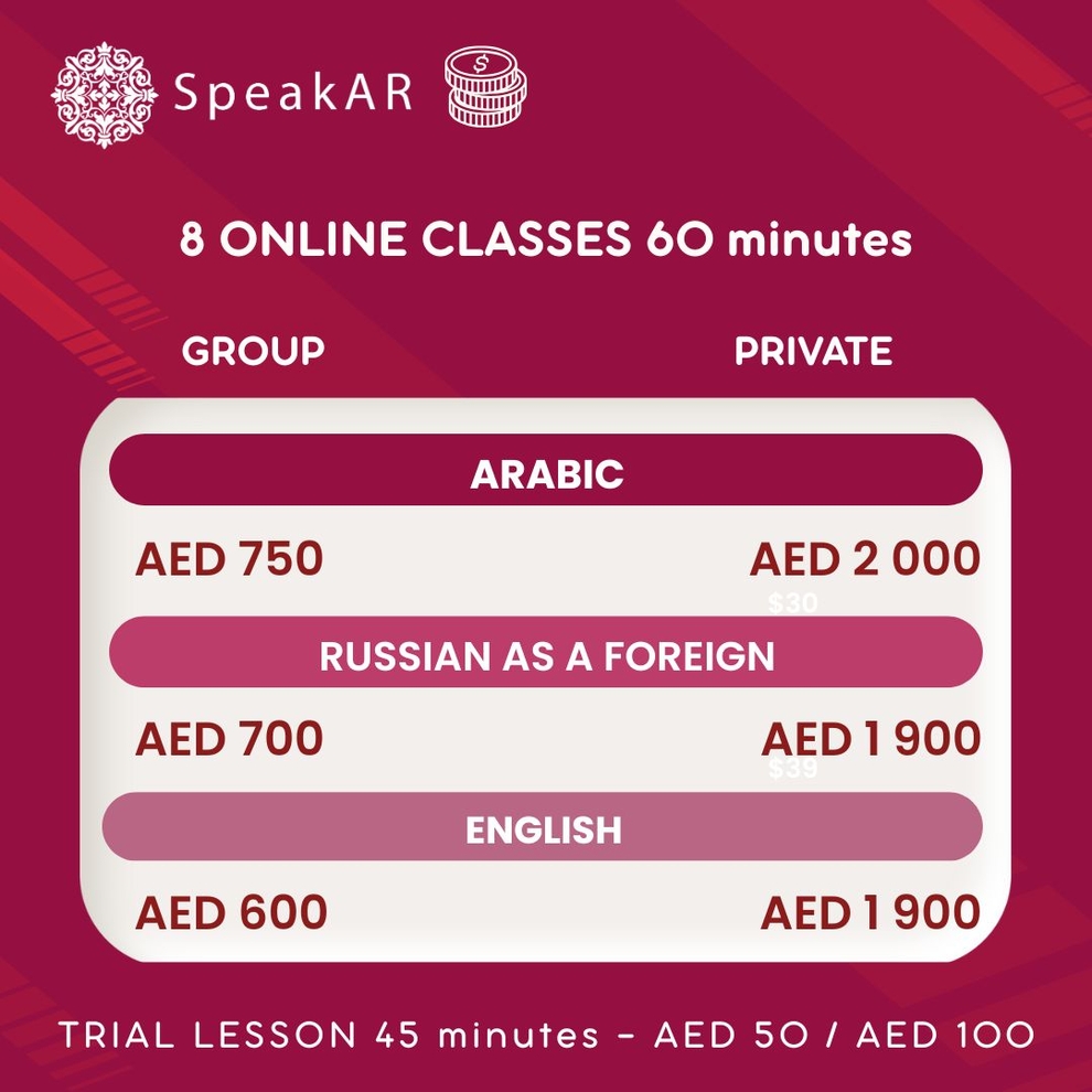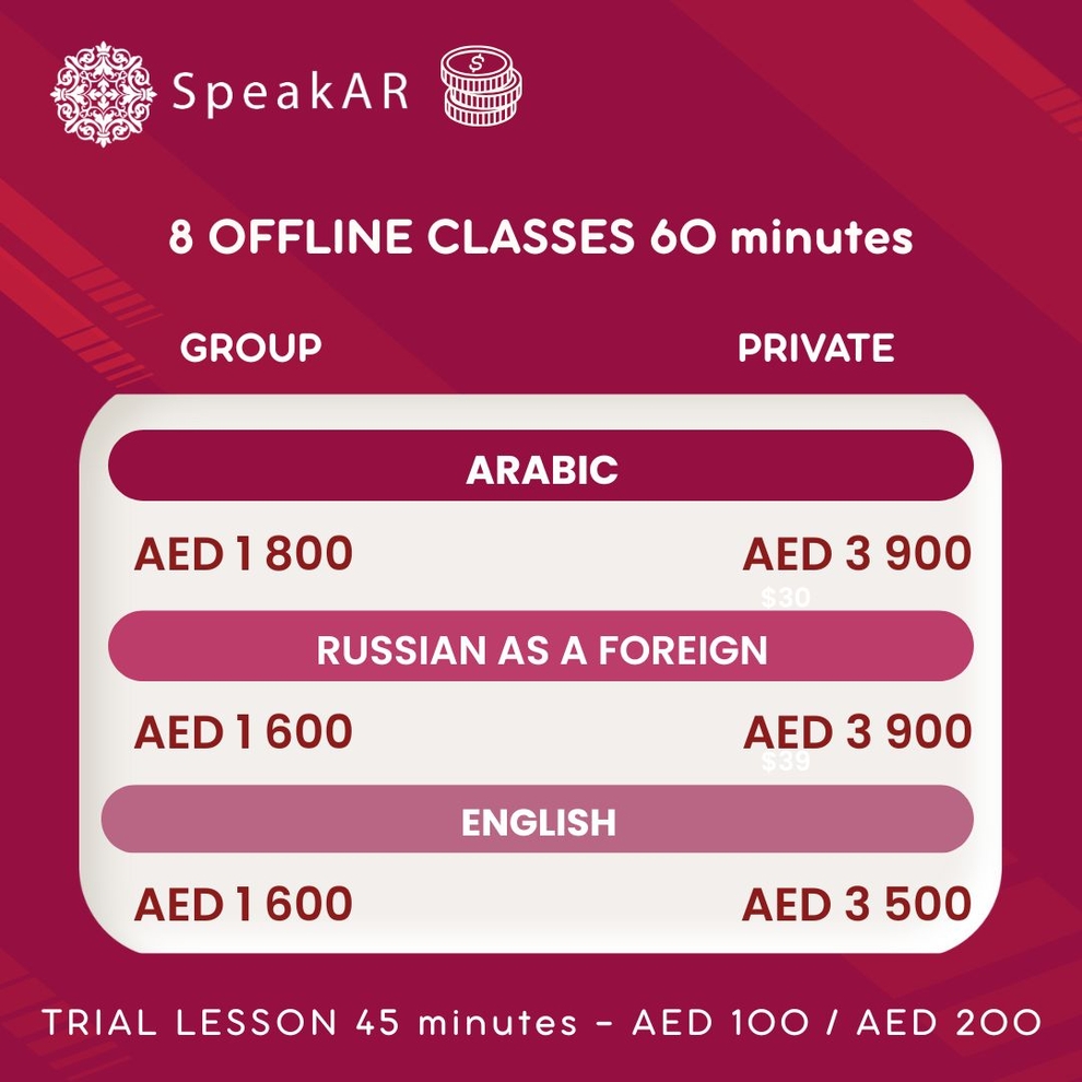 Занятия по арабскому / английскому/ русскому языку для школьников и студентов ОЧНО в Дубае в группе от 5 до 10 человек